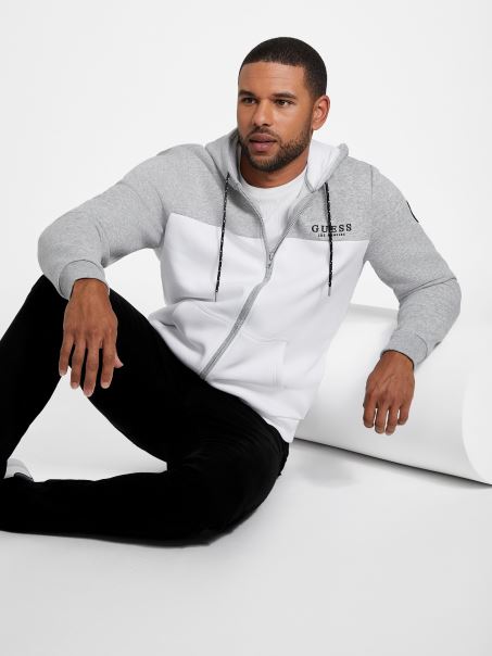 Hanorac Cu Fermoar Color-bloc Gri Thorn Melange Deschis Guess