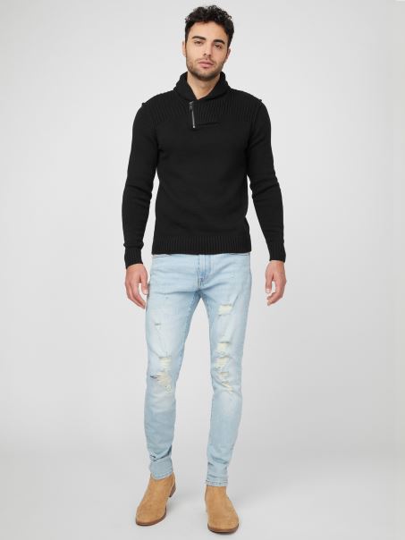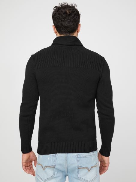 Rămâneți Confortabil și Casual în Acest Pulover Cu Guler șal, închidere Cu Jumătate De Fermoar și Manșete Cu Coaste.