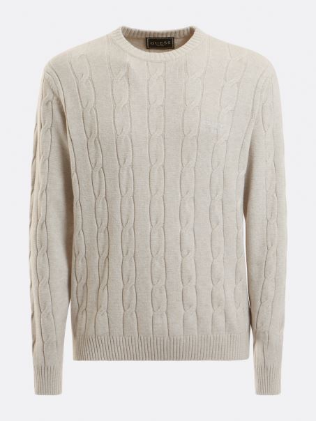 Jumper Gri Din Tricot Cu Mai Multe Cabluri Guess