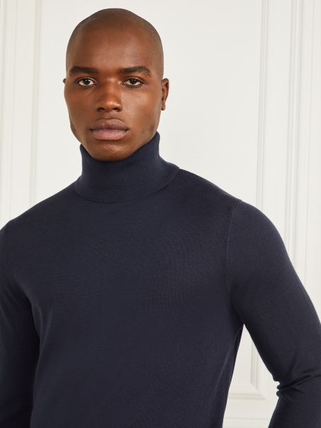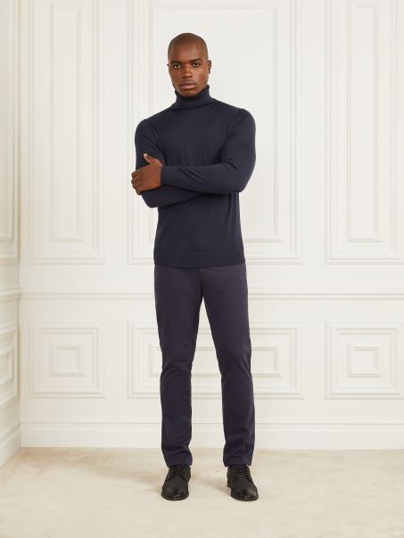 Pulover Cu Guler Din Lana Merinos Albastru Elegant Guess