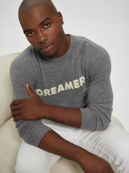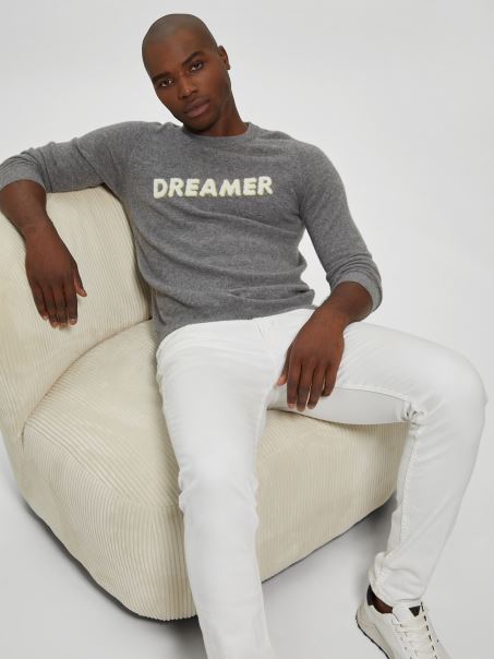 Pentru Visători. Confecționat Din Cașmir Ultra-moale, Acest Pulover Cu Gât Crew Are Un Design Inspirator De Slogan.