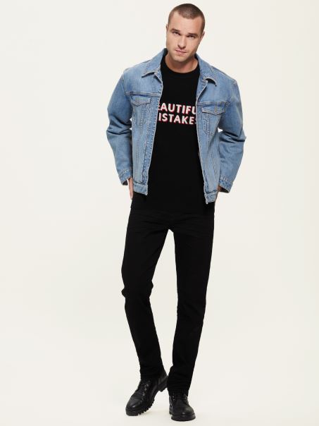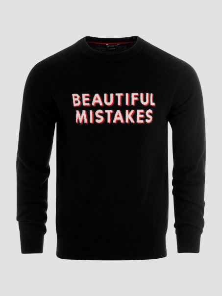 Pulover Cu Slogan Guess Jet Black Peregrine Cashmere
