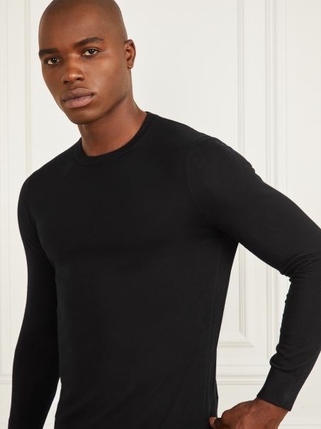 Pulover Guess Din Lână Merinos Cu Gât Negru Jet