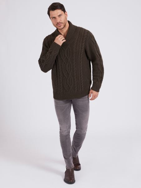 Pulover Tricot Cablu Din Amestec De Lana Guess Maro Inchis