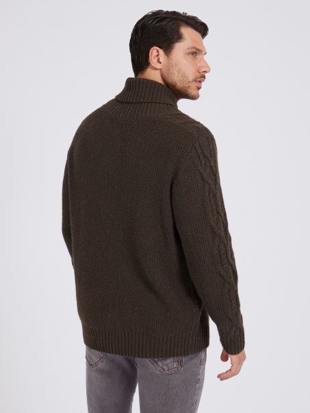 Home| Bărbați| îmbrăcăminte| Pulovere| Pulover Tricot Cablu Din Amestec De Lana Guess Maro Inchis