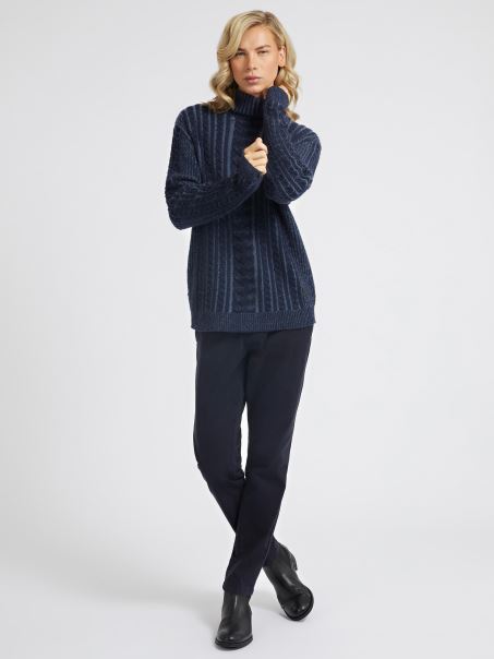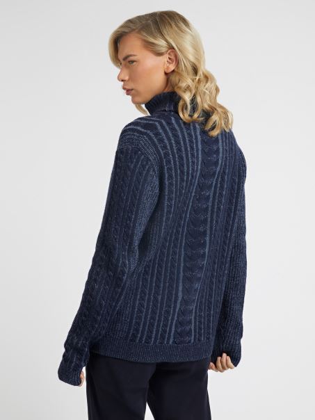 Guess Pulover Tricot Cablu Din Amestec De Lână Albastru închis