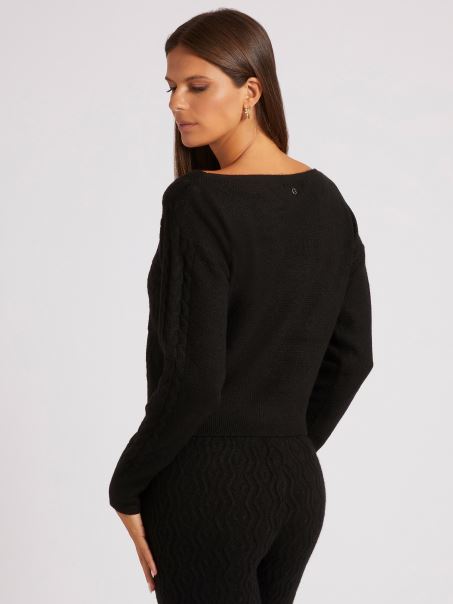 Pulover Din Amestec De Cașmir Tricot Cablu Guess Negru