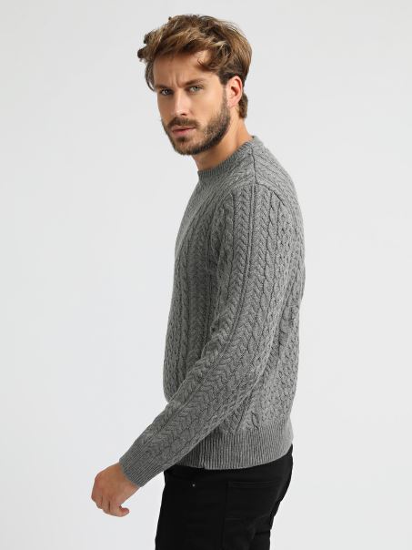 Pulover Din Tricot Cablu Guess Din Amestec De Lână Gri