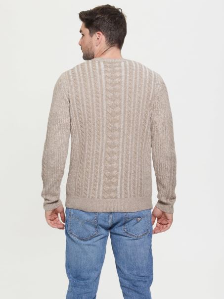 Pulover Tricot Cablu Din Amestec De Lana Guess Bej