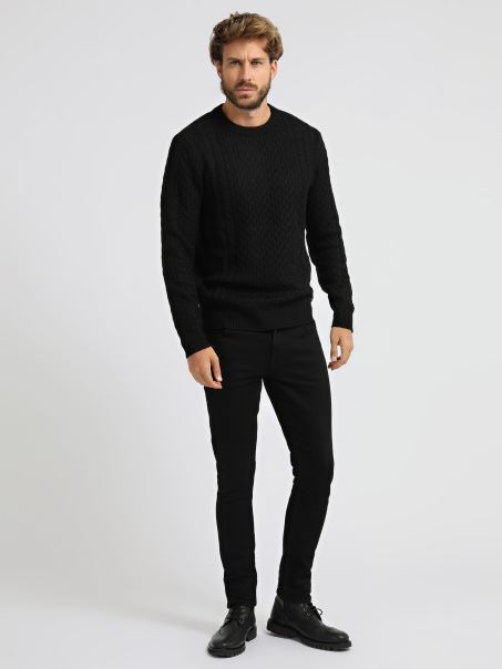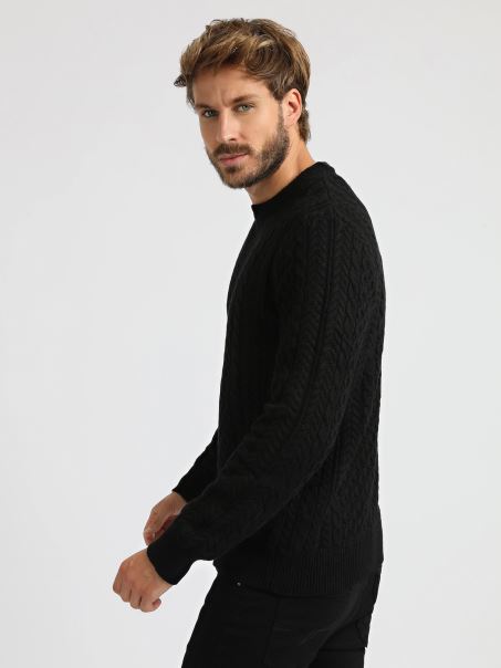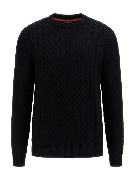 Pulover Tricot Cablu Din Amestec De Lana Neagra Guess