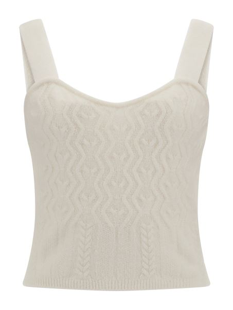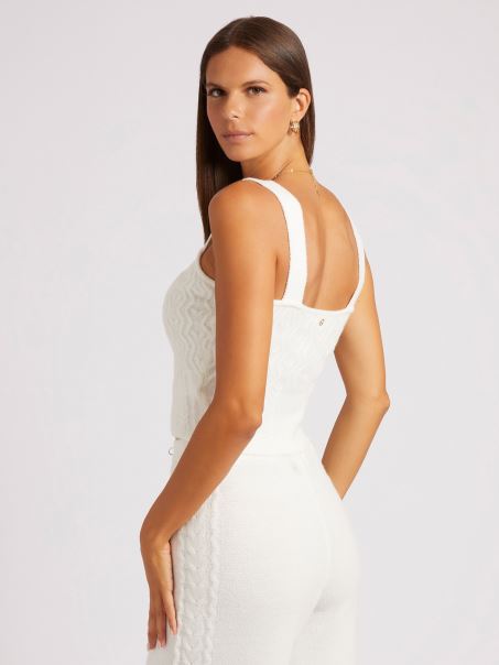 Top Pulover Guess Tricot Cablu Din Amestec De Cașmir Alb