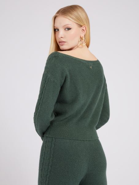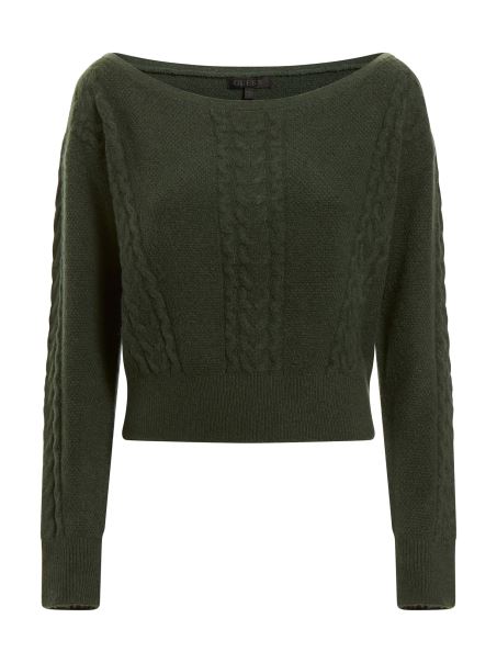 Home| Unisex| îmbrăcăminte| Pulovere| Tricot Cablu Amestec Cașmir Pulover Verde Guess