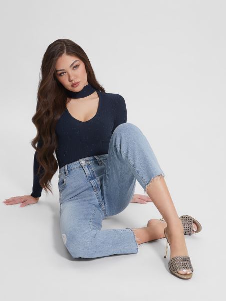 înnegrit Albastru Multi Lea Decupaj Paiete Pulover Guess
