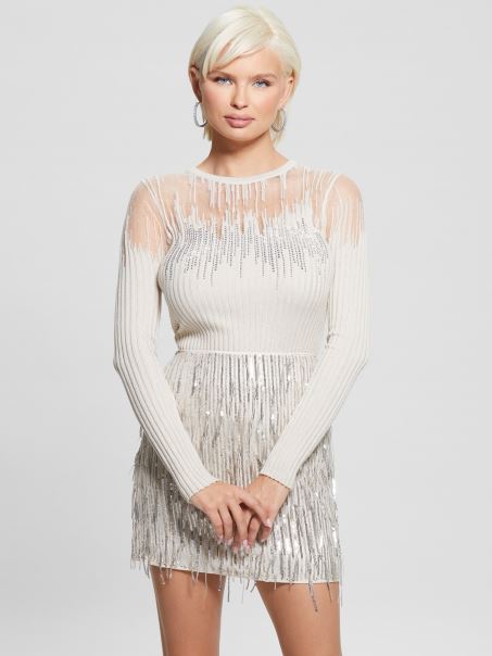La Fel De Unic Ca și Tine, Acest Top Din Tricot De Pulover Are Un Design Cu Nervuri Strălucitoare, Partea Superioară Transparentă, Aplicație Cu Strass în Față, Decolteu și Mâneci Lungi.