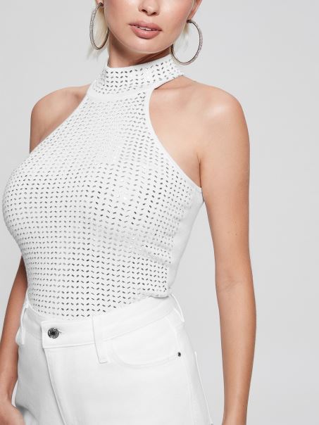 Străluciți Toată Noaptea în Acest Pulover Cu Decolteu Fals, Cu O Siluetă Fără Mâneci și Proiectat Cu Detalii în Oglindă în Față Pentru A Vă Menține în Centrul Scenei.