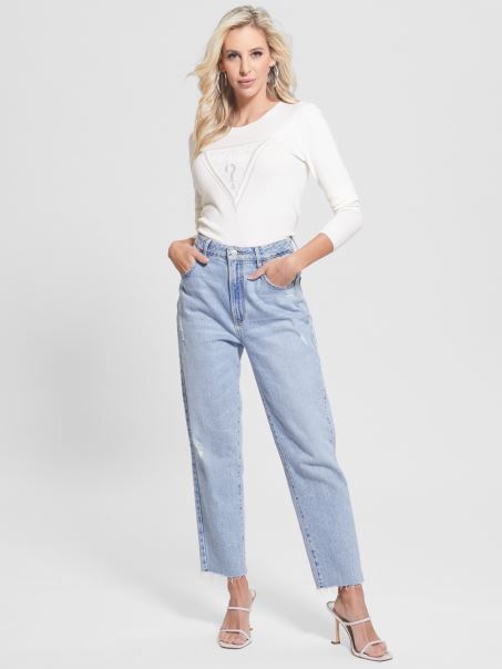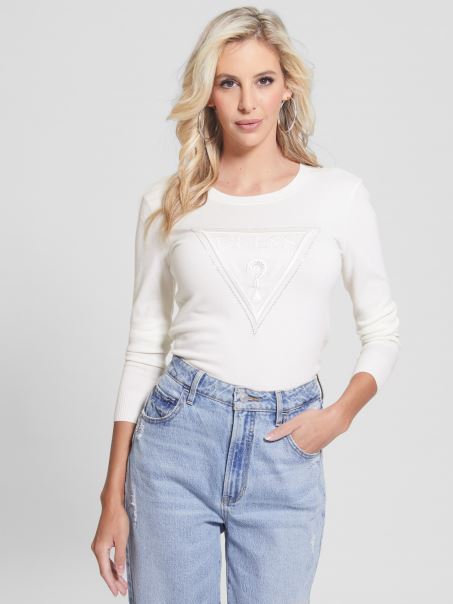 Un Pulover Ușor, Dar înalt, Cu Un Logo Brodat Cu Detalii Din Strass, Decolteu Pe Rând, Mâneci Lungi și Bordură Cu Nervuri. Fibre Din Păduri Gestionate Responsabil.