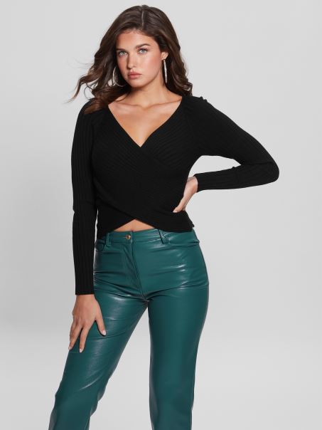Un Nou Tricot De știut, Acest Pulover Cu Mânecă Lungă Cu Nervuri Are Un Decolteu în V Adânc Pe Partea Din Față și Un Spate Scos. Conține Fibre Forestiere Provenite în Mod Responsabil.