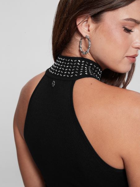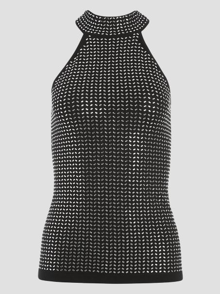 Străluciți Toată Noaptea în Acest Pulover Cu Decolteu Fals, Cu O Siluetă Fără Mâneci și Proiectat Cu Detalii în Oglindă în Față Pentru A Vă Menține în Centrul Scenei.