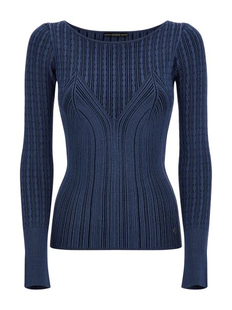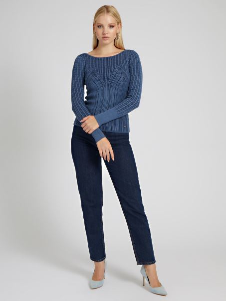 Pulover în Amestec De Viscoză Cu Decolteu Barcă Albastru Guess