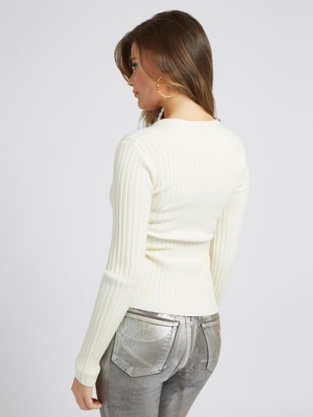 Pulover Cu Detaliu țesut Alb Guess