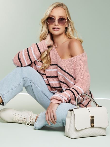 Pulover Cu Dungi Ilaria Guess Peach Rose Multi