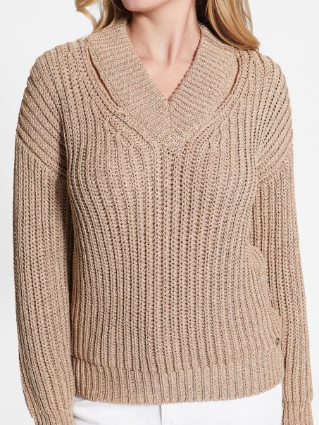 Pulover Decupat Lise Dirty Chai Lurex Multi Guess