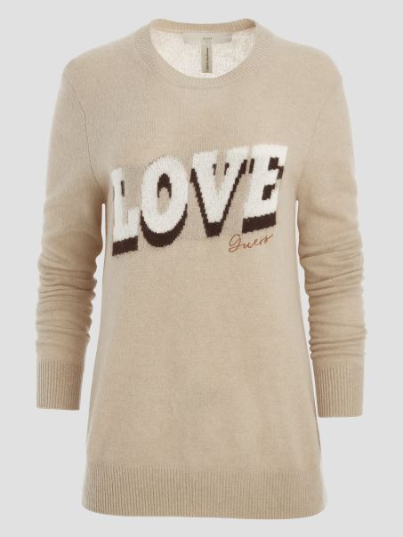 Pulover Din Cașmir Juliette Bej Melange Guess