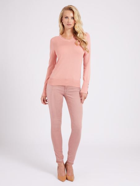 Home| Femei| îmbrăcăminte| Pulovere| Pulover Roz Cu Decolteu în V Guess