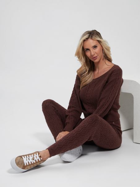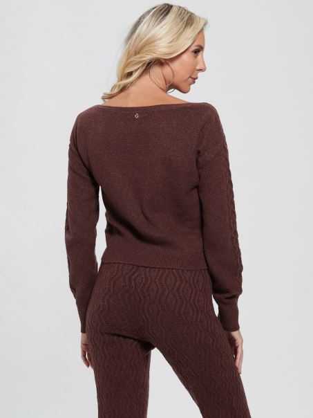 Pur Choco Guess Teresa Pulover Mixt Din Tricot Cablu