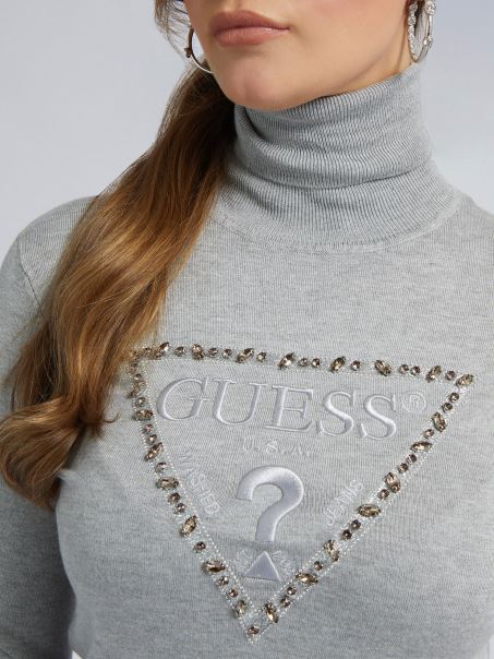 Strasuri Triunghi Logo Pulover Guess Gri Multi