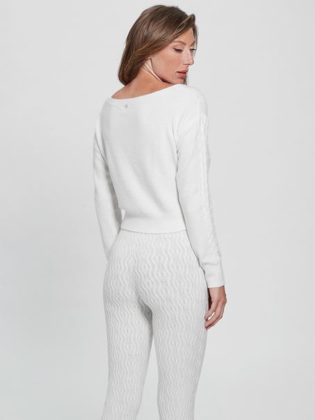Teresa Pulover Mixt Tricot Cablu Guess Dove White