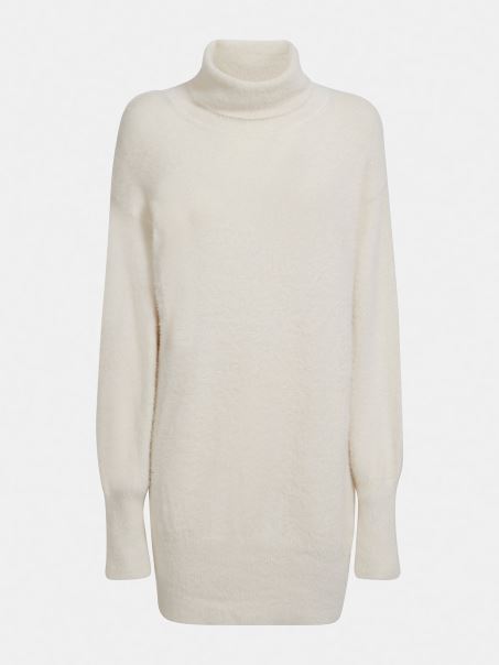 Guess Rochie Din Tricot Cu Gât înalt Alb