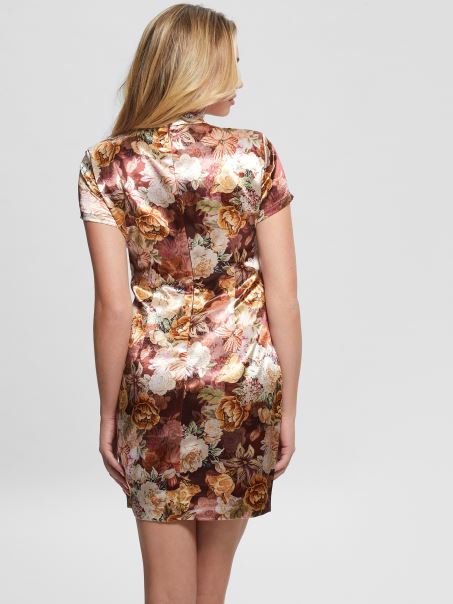 Ieșirile Cu Fetele Tocmai S-au îmbunătățit Cu Această Rochie Mișcată Din Satin, Cu Imprimeu Peste Tot, Decolteu Fals, Mâneci Scurte, Cusături Prințesă și Fermoar Ascuns La Spate.