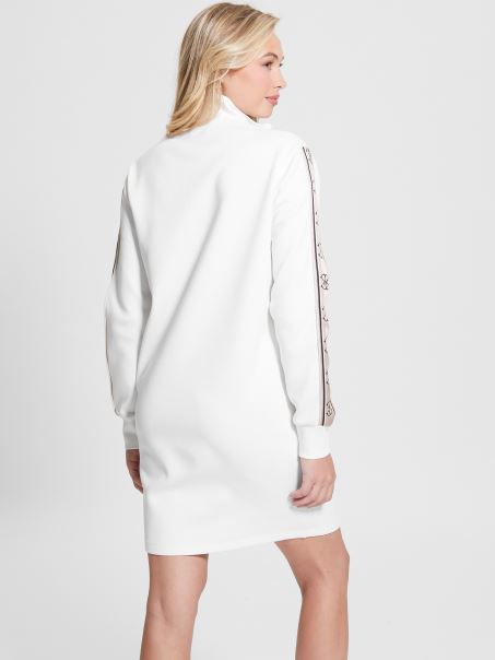 Această Rochie Drăguță Lejer Are Un Decolteu Fals, Un Fermoar Sfert, Mâneci Lungi Cu Bandă Cu Logo și O Potrivire Relaxată. Folosește Fibre De Bumbac Organic.