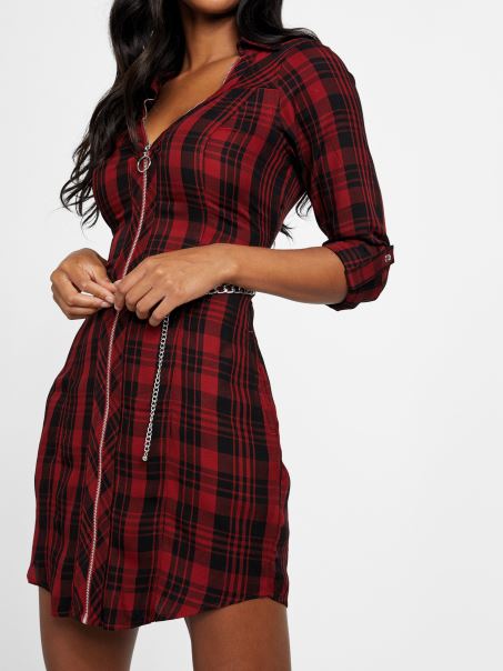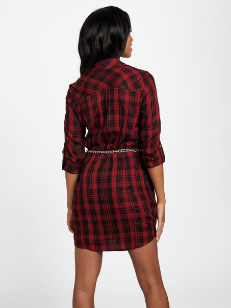 Confecționată Dintr-o Fabricație Ușoară Din Twill, This Rochie Cămașă Cu Mânecă Lungă Are Un Guler Pliat, Cu Fermoar Cu Inel O în Față și Curea Cu Lanț Inclusă.
