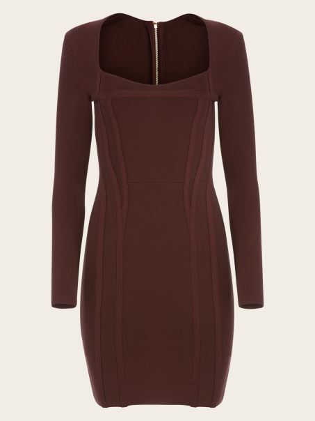 Uimește Cu Această Rochie Măgulitoare De Lucru La Cină. Având Un Decolteu în Formă De Inimă, Construcție De Bandaj Conturat și Mâneci Lungi. Inchidere Cu Fermoar La Spate.
