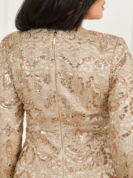 Un Aspect Plin De Farmec Pentru Orice Ocazie, Această Rochie Cu Mânecă Lungă Este Concepută Cu O Construcție Din Dantelă împodobită Cu Paiete Care Se Suprapune Pe O Căptușeală Mătăsoasă. Inchidere Cu Fermoar Invizibil La Spate.