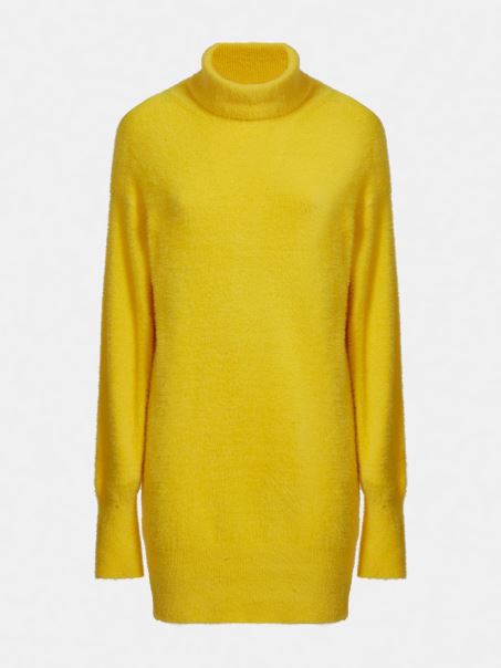 Rochie Din Tricot Cu Gât înalt Guess Galben