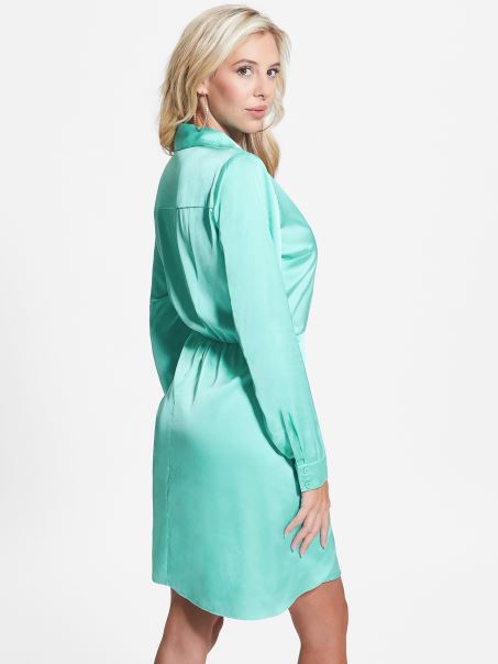 O Combinație Minunată, Această Rochie Cămașă Charmeuse Cu Un Design Inspirat De Wrap. Dispune De Guler Pliat, Plachetă Cu Nasturi și Mâneci Lungi. Contine Plastic Reciclat.