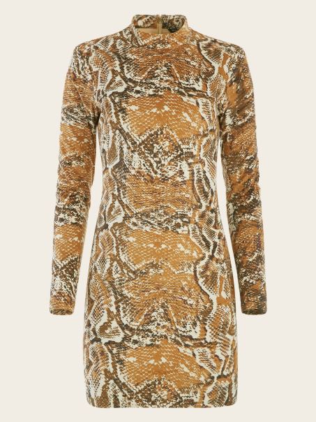 Le Vei Avea în Nebunie Când Ieși în Această Rochie Elegantă Din Piele De Căprioară Artificială, Cu Imprimeu Din Piele De șarpe, Fals Decolteu, Mâneci Lungi și Potrivire Care Definește Curbe. Fermoar Ascuns La Spate.