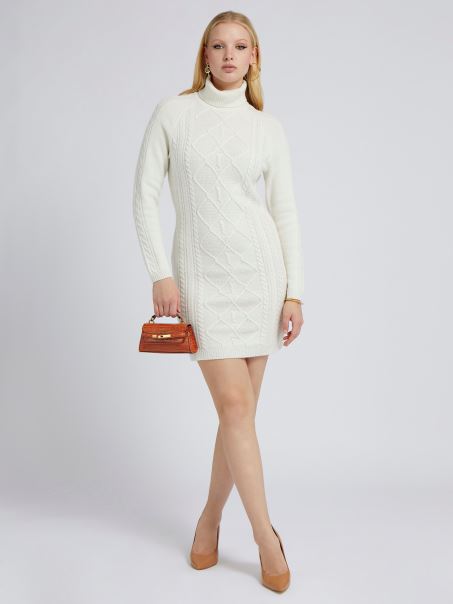 Rochie Pulover Albă Din Amestec De Lână Guess