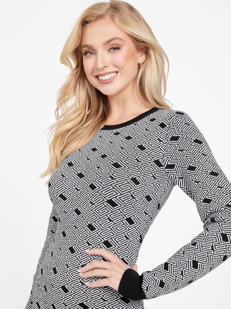 Treceți La Un Nivel Superior Cu Această Rochie Pulover, Cu Un Design Cu Logo Geometric, Siluetă Potrivită și Bordură Contrastantă Cu Nervuri.