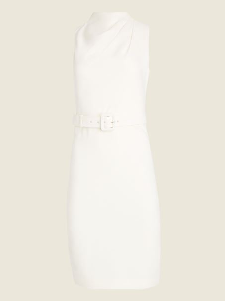 Lasă O Impresie De Durată în Această Rochie Croită Finisată Cu O Talie Cu Centură Pentru Cea Mai Bună Potrivire, Decolteu Fals Elegant, Cu Detalii încrețite și Lungime Midi. Fermoar Ascuns La Spate.