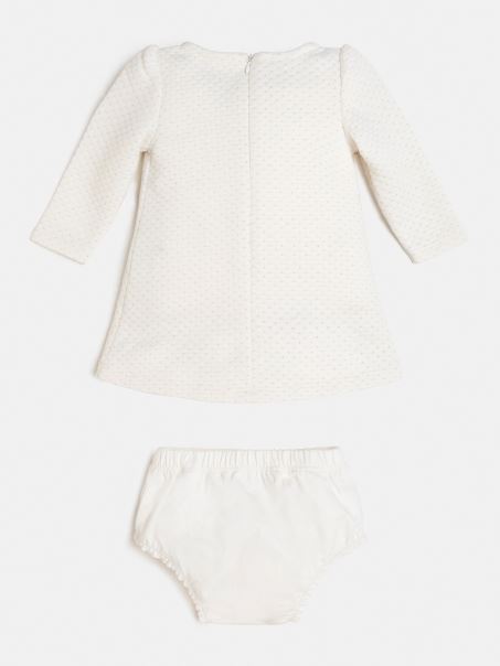 Set Rochie și Chiloți Din Jacquard Lurex Alb Ghici