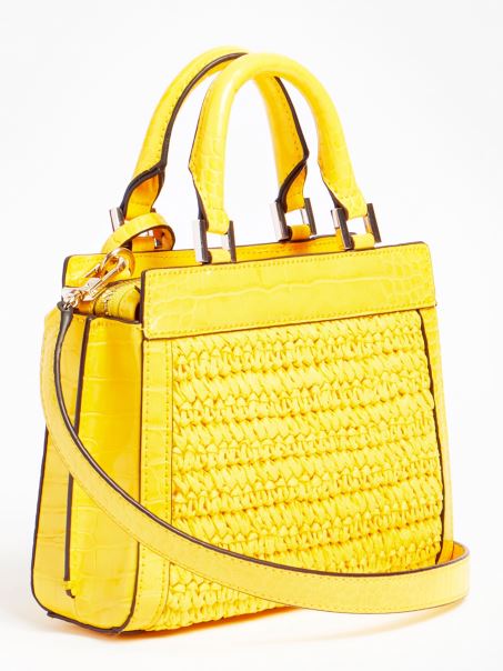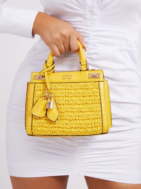 Geantă De Mână Katey Rafia Mini Galbenă Guess
