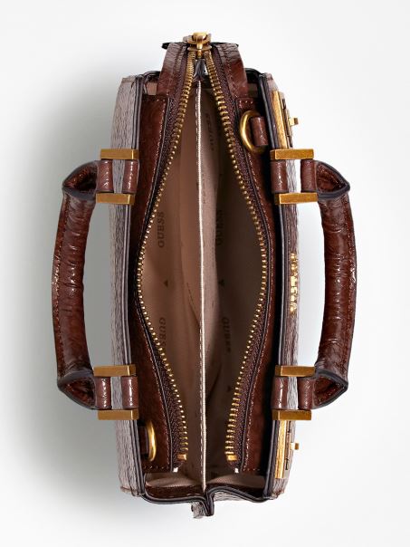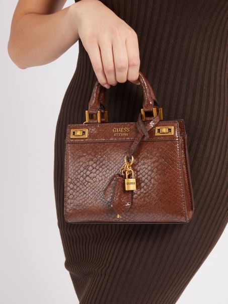 Mini Geantă De Mână Maro Guess Katey Cu Imprimeu Piton