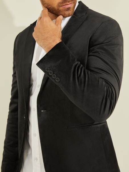 Adaugă Un Finisaj De Lux Look-ului Tău Cu Acest Blazer Din Catifea, Cu Rever Crestat, închidere Cu Nasturi în Față și Buzunare Frontale.