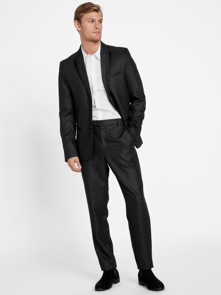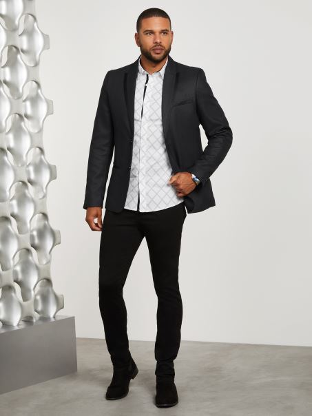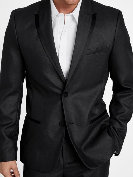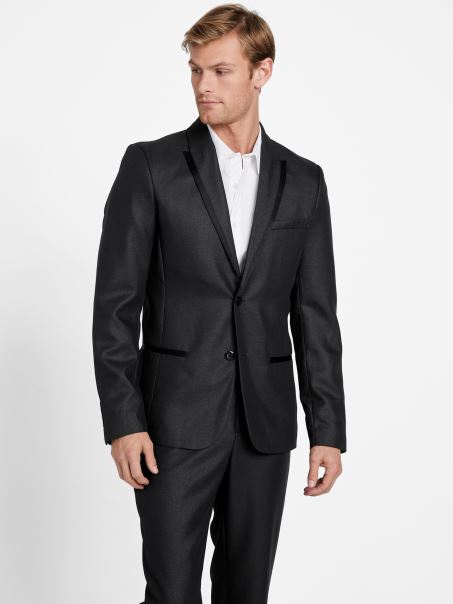 Lustruiește-ți Aspectul Cu Acest Blazer Texturat, Cu Rever Crestat Cu Tiv Din Satin, închidere Cu Nasturi în Față și Buzunare Cu Pădure în Față.