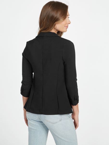 Alunecă Lin De La Serviciu Mai La Cină în Acest Blazer Elegant. Proiectat Cu Guler Cu Rever Dublu, Buzunare Laterale Duble, Mâneci Trei Sferturi și închidere Cu Nasturi.