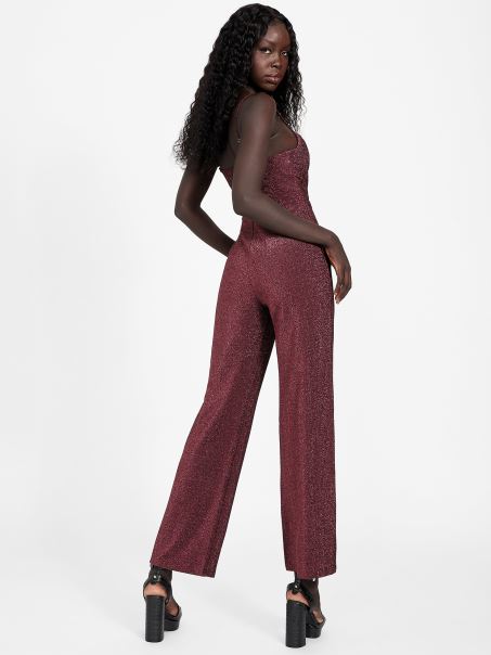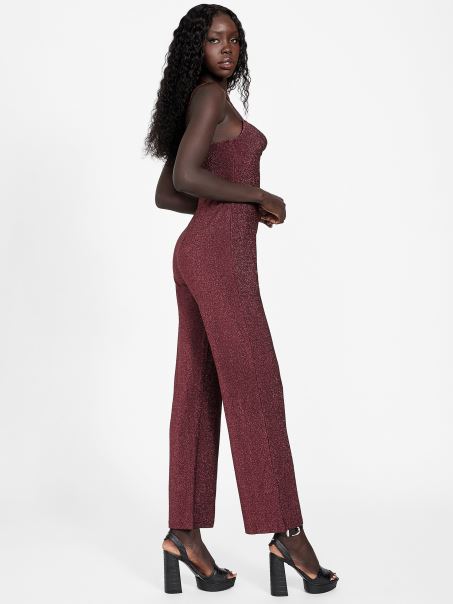 Realizată Pentru A Uimi, This Salopetă Este Proiectată Cu Tricot Metalic Complet, Gât Capcană, Bretele Subțiri și Picior Drept.
